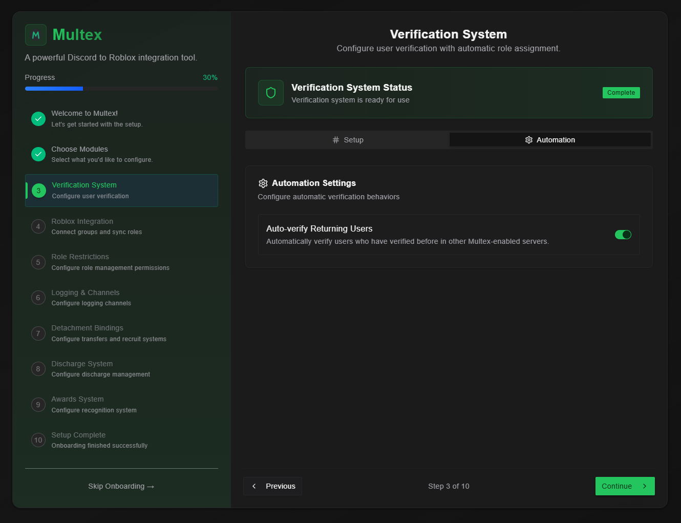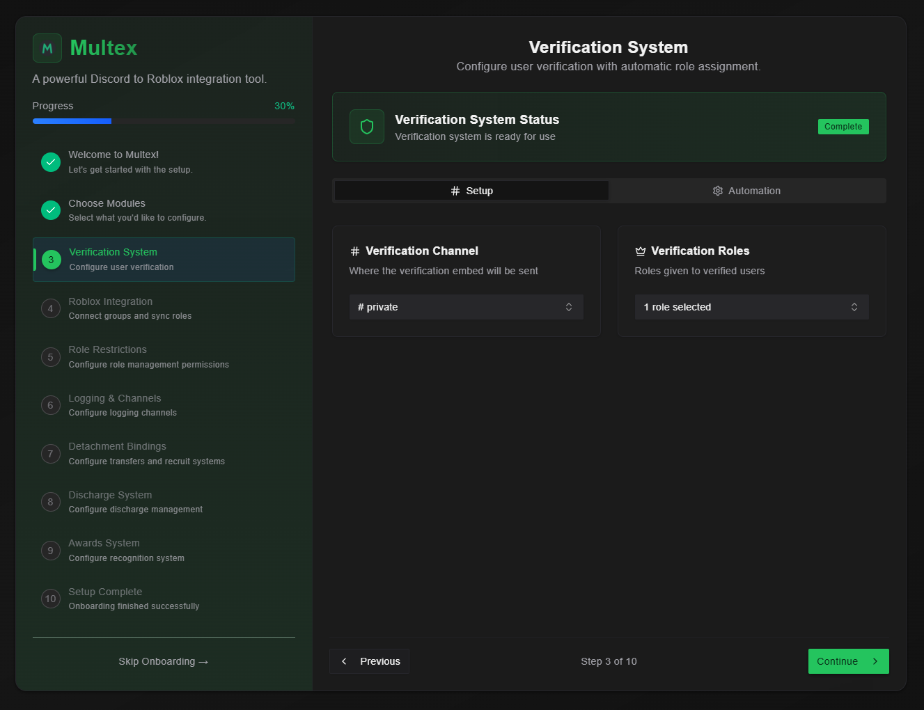 - Verification Roles - Roles that are given to the user after they successfully verified with Multex